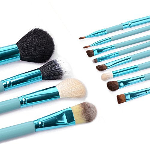 12pcs Professional Make up Brushes Set Cosmetic Make up Tool Kit with Cup Holder Case (Green)