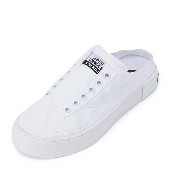 - 스트랩리스 스니커즈 디자인의 여성 뮬.