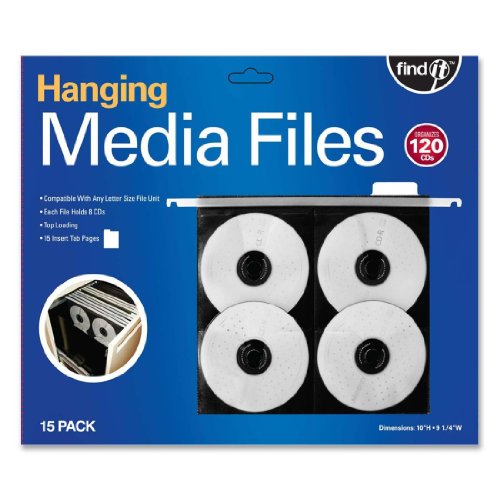 Find It products challenge the traditional thinking and bring smart design improvements to help you work easier… work smarter! Whether you love to work and want to do it more efficiently or you prefer not to work and just want to get the job done. Find It products will help you get there quickly. Store thousands of CDs in a file cabinet or file tote and quickly find them! Convert existing file space into super-massive data storage with these CD pages that hang like a file. Every pack comes with indexing tabs that extend above the page so that you can quickly find the CD you are looking for. Each pack contains 15 pages, and each page can store up to 8 CDs or DVDs.Feature