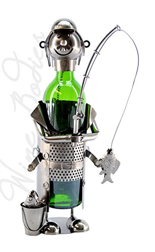 WINE BODIES ZB230 Fisherman with Pale Metal Wine Bottle Holder, Charcoal