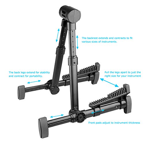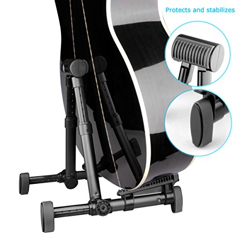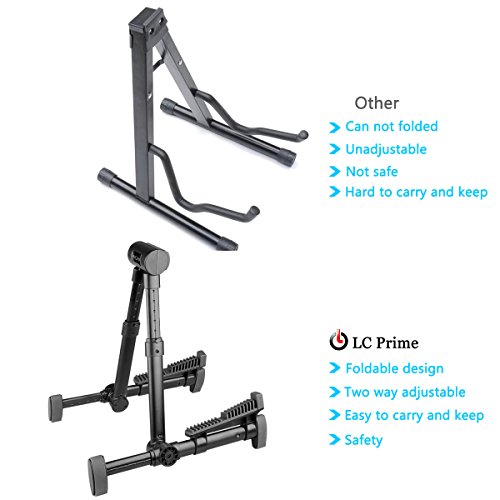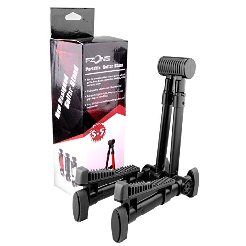 -. Feature : ✔︎ APPEARANCE: Foldable guitar stand, multiple folding, small and exquisite, easy to carry. Stylish, 3 color to choose. / ✔︎ MATERIAL: High-quality aluminum alloy plus ABS material work, anti-rust function, and it's very durable. / ✔︎ ANTI-SCRATCH: High-quality silicone in the head and bottom of the stand can effectively prevent your instrument from scratches. / ✔︎ COMPATIBLE INSTRUMENTS: Suitable for guitar, bass, violin, ukulele, and other instruments. / ✔ WHAT YOU GET: LC P.R.Ime® 1 x Fzone S-5 Portable Guitar Stand 1 x Soft cloth bag . And our 60-day warranty and friendly customer service.