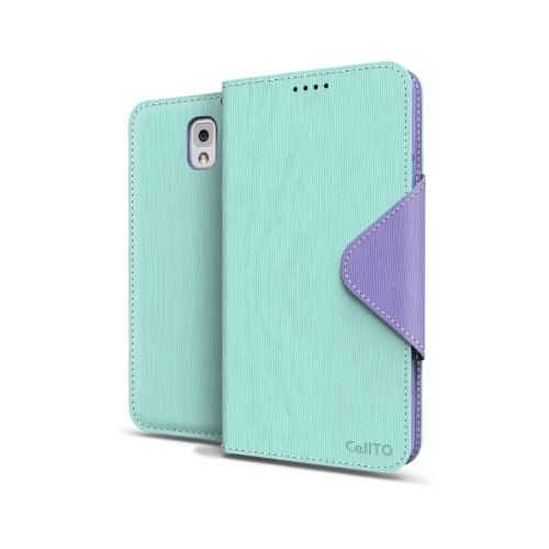 Mint/ Lavender CellTo Faux Leather Diary Flip Case w/ ID Slots, Bill Fold, Magnetic Closure & Free Screen Protector for Samsung Galaxy Note 3