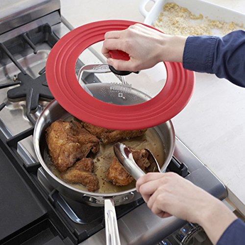• Stepped silicone gasket forms a tight seal on pans from 9" to slightly over 11" in diameter