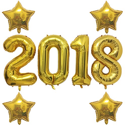 -. Feature : GREAT SIZE & REUSABLE 40 Inch LARGE 2, 0, 1, 8 LETTER BALLOONS can Float With Helium and Can be Reused Several Times / Package Includes: "2018" - 4 Number Balloons,Gold Foil Mylar Star Balloon 18 Inch - 4 pcs / Praise 2018 gold balloons and give you a complete look at your party decorations, events, graduation ceremonies, perfect events, wedding dresses and graduation party supplies / This balloons is self sealing so no tying with fingers required。Material is aluminum film, color uniform, spherical beautiful / Recommended balloon inflatable 80-90 percent
