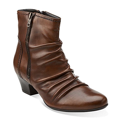 A ruched leather upper and low heel makes this low profile ankle boot the ideal companion to casual fall fashion. Clarks Limbo Dance combines classic bootie style with true Clarks comfort creating the perfect choice in fall footwear.Feature