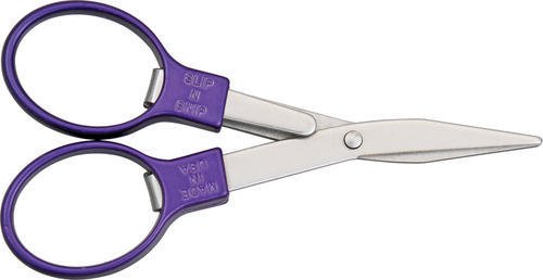 -. Feature : Proudly made in the United States / The original folding safety scissors / Only 3 1/8 inch closed / Stainless surgical steel blades / Purple handles