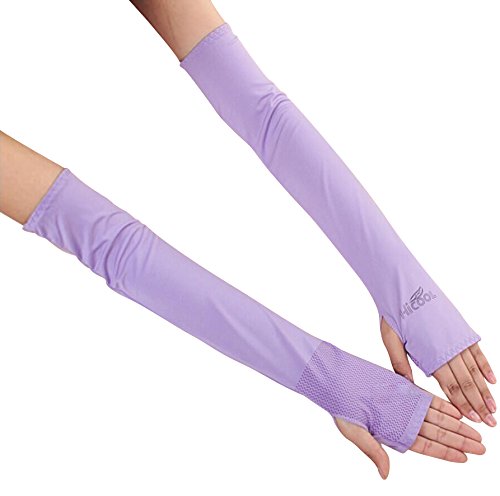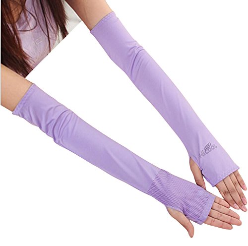Aimeio Unisex Summer Arm Cover Sleeves Long Fingerless Sun-proof Anti-UV Long Gloves for Outdoor Training,Driving, Cycling, Hiking (17x4.3 in, 6 Color) (Purple)