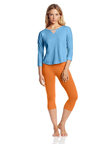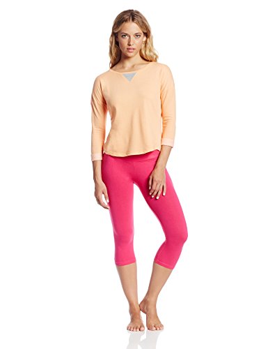 Two-piece sleep set featuring three-quarter sleeve top with drop shoulders and rolled cuffs