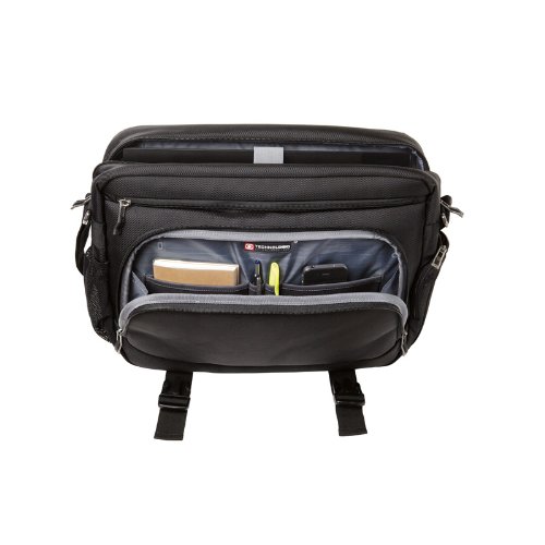 - Feature : Flapover construction with double lock closure / Interior padded laptop compartment / Padded tablet/e-reader sleeve / Easy access zippered pockets for business essentials / Side beverage/accessory holster