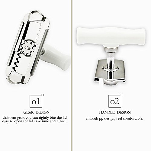 ?EASY OPENING. The steel teeth on the clamp grab the edge of the stubborn lid tightly and hold it the entire time you are twisting. Easily opens most jars with a simple twist!