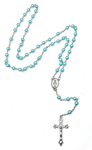 Catholic 6mm beads Woman or Girl Aqua Blue Rosary with White Vinyl Rosary Case with gold accent