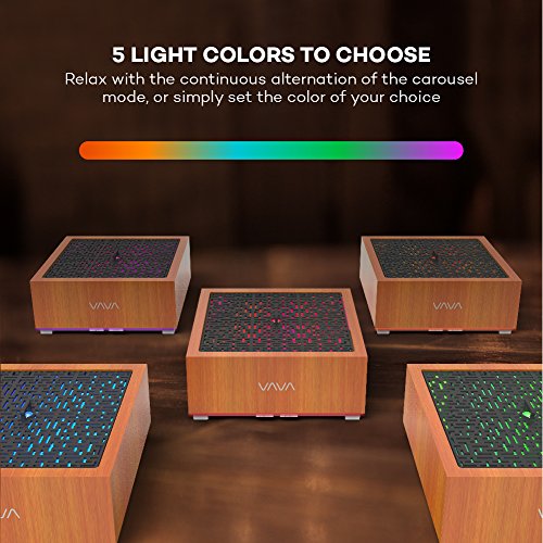 5 Light Colors to Choose Pushing its visual appeal beyond its elegant wood construction, this Japanese garden-inspired aromatherapy diffuser glows with 5 reinvigorating LED lights. Let these alternate in a perpetual carousel, or set your favorite color and have it soothe your spirit and please your eye.