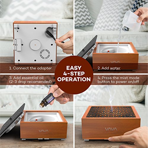 VAVA ESSENTIAL OIL DIFFUSER, 8-16 HOURS WORKING TIME, SQUARE AROMA DIFFUSER WITH REAL SOLID OAK WOOD, JAPANESE ZEN DESIGN ULTRASONIC DIFFUSERS, DIFFUSERS FOR ESSENTIAL OILS, WATERLESS AUTO SHUT-OFF