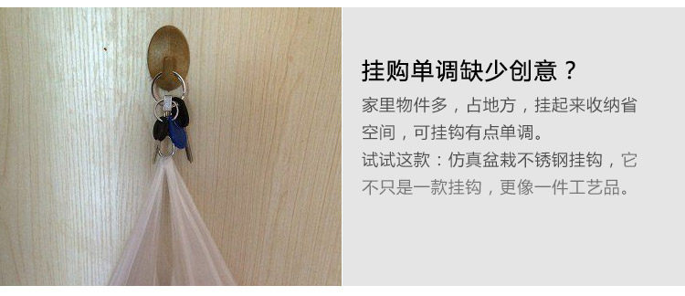 时尚仿真多肉小盆栽多功能粘胶不锈钢挂钩 免钉无痕厨房粘钩