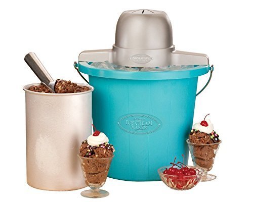 Studio : Basmaker Publisher : Basmaker Product Description The Old Fashioned Ice Cream MakerTM provides a homemade ice cream experience with modern convenience. Simply fill the plastic bucket with ice, place the aluminum canister filled with ingredients in the center of the bucket and the electric motor does the churning for you. Soon, delicious ice cream is ready to serve! Makes 4 quarts of ice cream per batch. 0