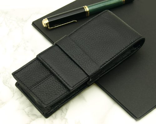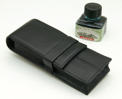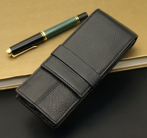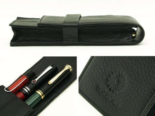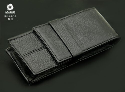 (Wancha) WANCHER calf leather luxury leather three putting pen case black thick shaft fountain pen also