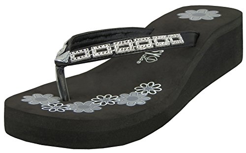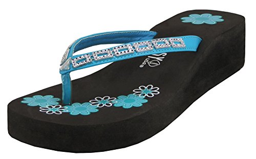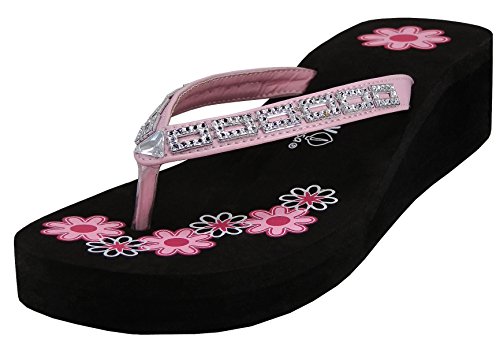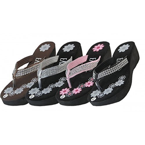 Product DescriptionThese women's flower print with rhinestone platform thong sandals are a comfortable and stylish look for the spring and summer. Multiple colors are available.0
