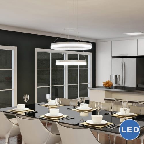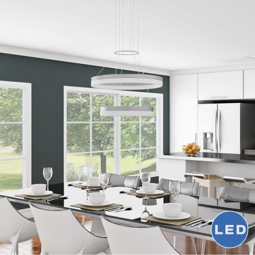 Product Inspiration: The name Tania is said to be characteristic to beautiful yet shy females whom often don't realize their own beauty. This coyness creates an intangible allure that only increases over time. The Tania collection by VONN Lighting captures this same essence with a timeless elegance that is both subtle and pretty. Features: Dimmable LED: Full dimming (0.01% to 100%) on standard dimmer switches Soft White: 3000 Kelvin color temperature, the same as halogen bulbs (no blue hues) Incandescent Equivalent: 3900 lumens, roughly the same as five 60 watt incandescent bulbs Aluminum Body: Strong and light-weight ETL Listed for Dry Location Voltage: Operates on standard 120 line voltage; a separate transformer is not required Technologies: Pearl pure Diode Arrays: Produces brilliant, full-bodied white light with high color rendering (colors within the room are lit accurately and vibrantly). Continuum Driver: Preserves the integrity of the LED system by responding to the needs of the diodes throughout their lifetime, including: ambient temperature variances, dimmer use, and age. Voptics Diffusers: Engineered prismatic lenses diffuse light evenly across a 120 degree light angle at 90%+ transmission efficiency. Benefits: Forever Fixture & Bulb: Never buy another fixture or bulb. All VONN fixtures and their onboard LED systems are covered under warranty for as long as you own your home. Savings: The typical incandescent uses up to 90% of its wattage producing (inefficient) heat. LED systems do not produce significant heat, thereby eliminating nearly all of the 90% wasted consumption. Health & Environment: Unlike fluorescent lighting, LED diodes do not contain mercury, and are not considered hazardous. Further, LED efficiency requires less electricity, supporting lower CO2 emissions. Dimensions: Length: 23.5 in Width: 23.5 in Height: 120.1 in Canopy Dia: 11 in Height Adjustment: Min: 15.8 in, Max: 120.1 in Weight: 7.5 Lbs.Feature