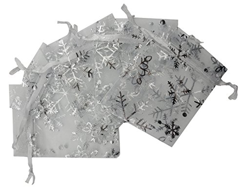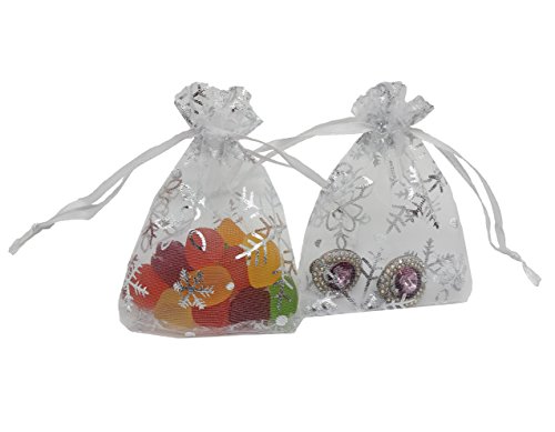 Ankirol 100pcs Mini Organza Favor Bags 2.8x3.6'' Jewelry Candy Gift Bags Samples Display Money Organizer Little Things Drawstring Pouches Snowflake With Silver Print (white)