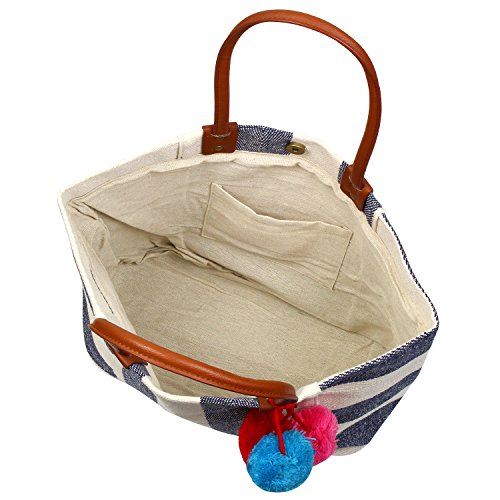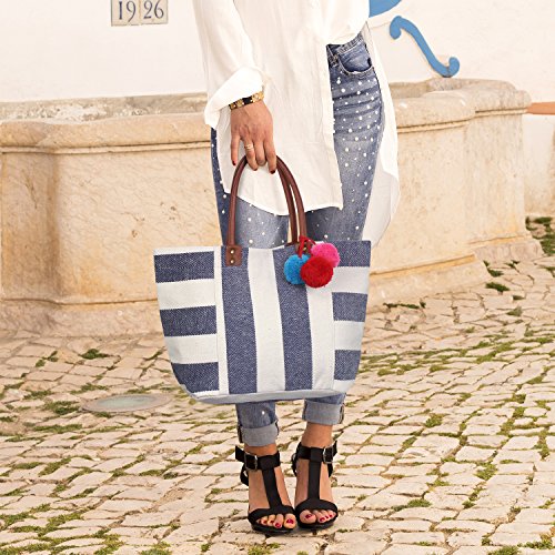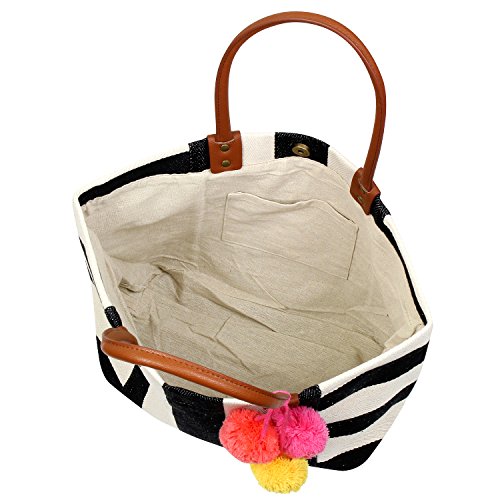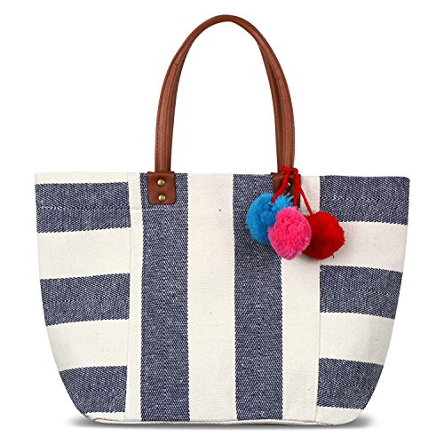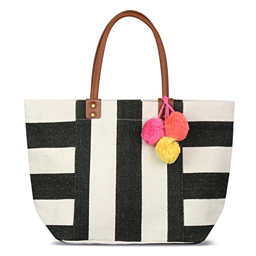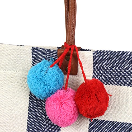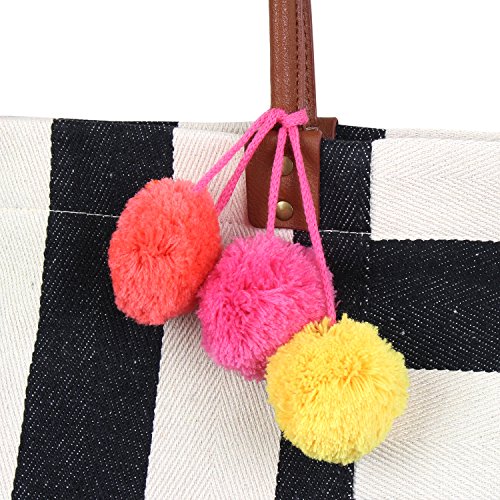 - Each bag features a three trendy attention grabbing pom poms that add a colorful touch to the bag