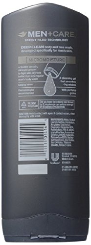 Dove Men+Care Deep Clean Body and Face Wash with MICROMOISTURE for healthier, stronger skin is a Dermatologist recommended cleansing gel clinically proven to fight skin dryness better than regular men’s body wash. This ultra-light formula deep cleans with purifying grains and rinses off for total skin comfort. Dove Men+Care Deep Clean Body Wash’s patent filed technology formula was developed specifically for men’s skin by the #1 Dermatologist recommended brand, and smoothes dry patches while providing a purifying, deep clean. Dove Men+Care Body and Face Wash MIRCROMOISTURE technology activates on skin when lathering up. Droplets are precisely sized to deliver optimum moisture without feeling heavy, and the Body Wash’s cleansing gel rinses off easily.Feature