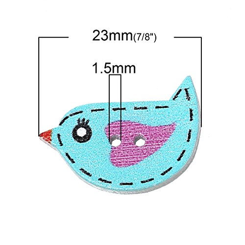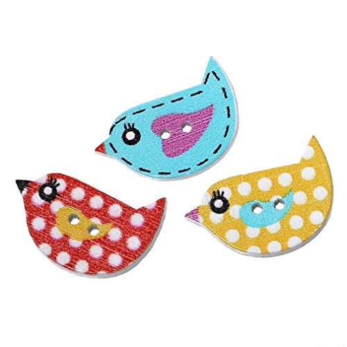 Souarts Mixed Random Bird Shape 2 Holes Wood Wooden Buttons for Sewing Crafting Pack of 100