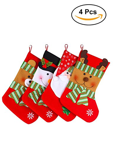 - Unique Christmas Stockings : 4 PCS cute Xmas stockings: Santa, Snowman, Reindeer, Bear,1 Piece of each pattern.Add cute and funny Christmas holiday atmosphere. Excellent decoration for Christmas, New Year at home, restaurant, hotel, club, bar.