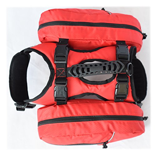-. Title : Dog Backpack Waterproof Pet Saddlebag Vest Harness Hound Hiking Gear,Reflective Safety Adjustable Saddlebag Outdoor Camping Travel Accessories with 2 Removable Packs for Large Dog Carry Products