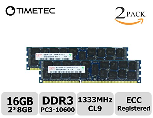 Timetec® Hynix 16GB Kit (2x8GB) DDR3L 1333MHz (PC3-10600) Registered ECC 1.35V CL9 2Rx4 512x4 Dual Rank 240-Pin RDIMM Server Memory Module Upgrade (Server Only, Not for Desktop/Laptop)( 16GB Kit (2x8GB))