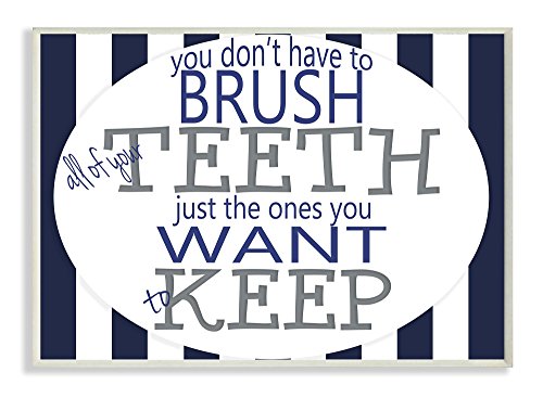 Stupell Home Décor Brush All Of Your Teeth Striped Textual Bath Art Wall Plaque, 10 x 0.5 x 15, Proudly Made in USA