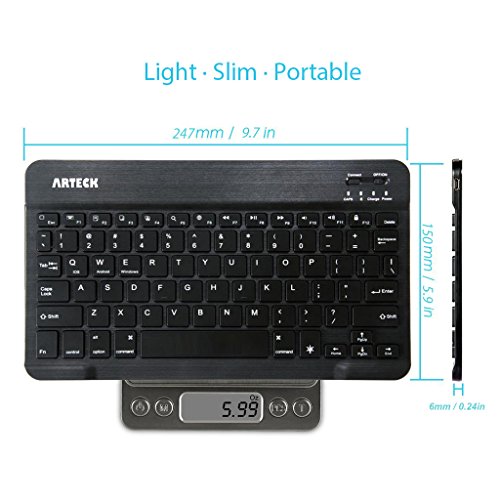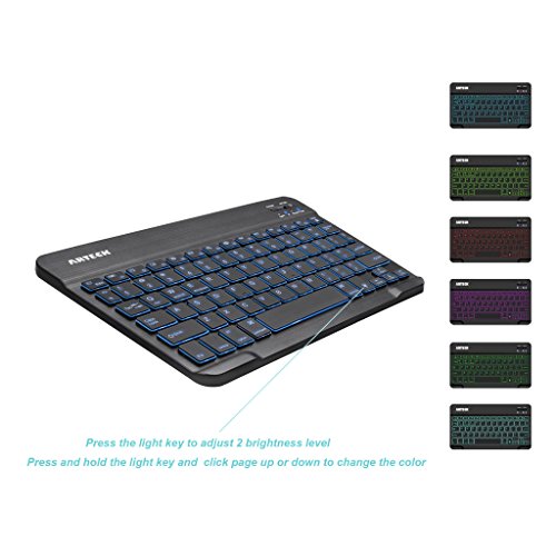 Arteck Universal Backlit 7-Colors & Adjustable Brightness Ultra Light & Slim Portable Wireless Bluetooth 3.0 Keyboard for iOS iPad Air, iPad Mini, Android, MacOS, Windows Tablets PC Smartphone Built in Rechargeable 6-Month Battery