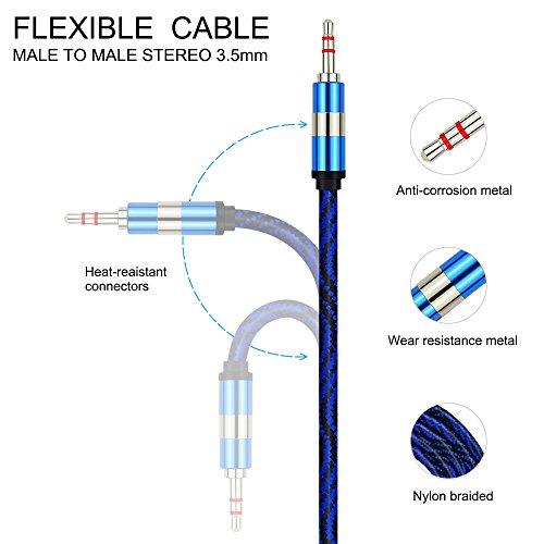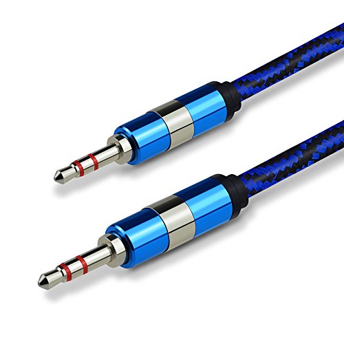 3Ft rugged bold nylon braided 3.5mm male to 3.5mm male stereo auxiliary audio cable.