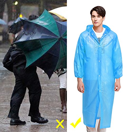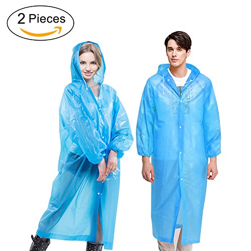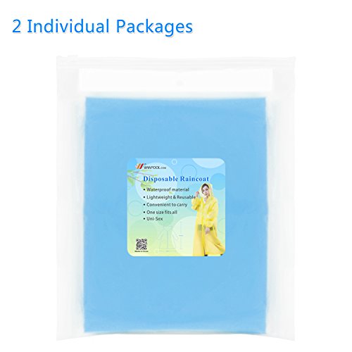 WANPOOL Unisex Disposable Waterproof Raincoat Rain Poncho With Hood For Adults - 2 Pieces (Blue)