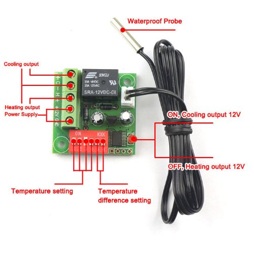 DROK 12V DC Digital Heating/Cooling Thermostat 20-90 °c Temperature Controller With 0.5 Meter Sensor Probe Cable