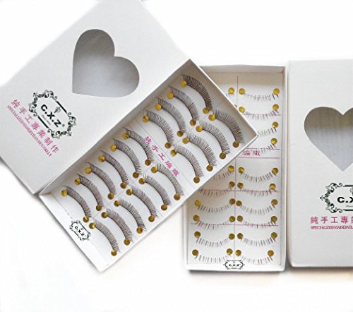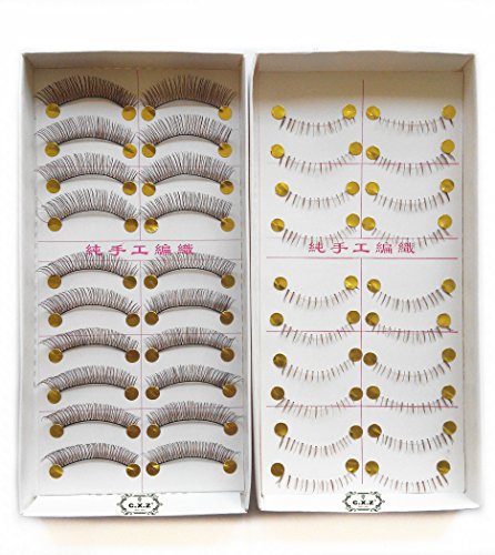 C.X.Z 100% Handmade Brown Coffee Mocha Fake Upper Lower Bottom Eyelash False Eyelashes Comfortable Cotton Clear Strip Band Full Most Natural Makeup...
