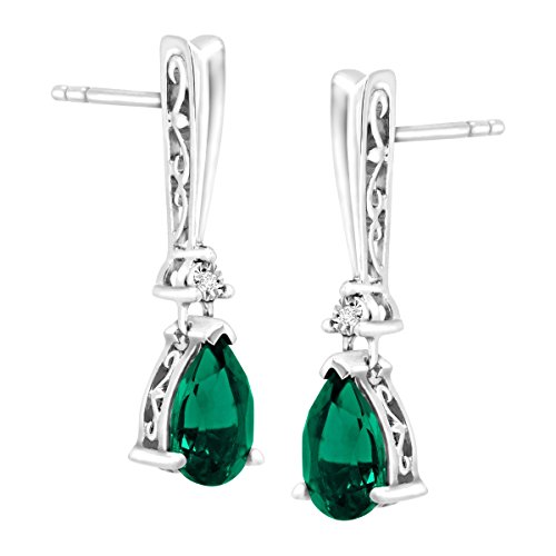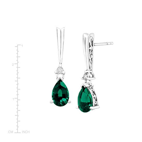 -. Feature : 1 3/4 ct Pear-Cut Created Emeralds / Diamond Accents / Sterling Silver & 3K Posts / Measure 15/16 by 1/4 Inches