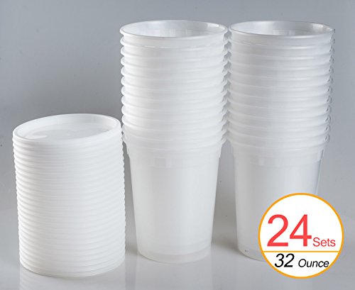 TashiBox Plastic Food Container / Food Storage / Soup Container with Lids, 32 Ounce - Set of 24