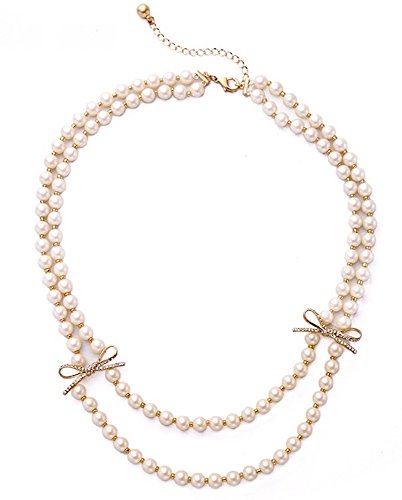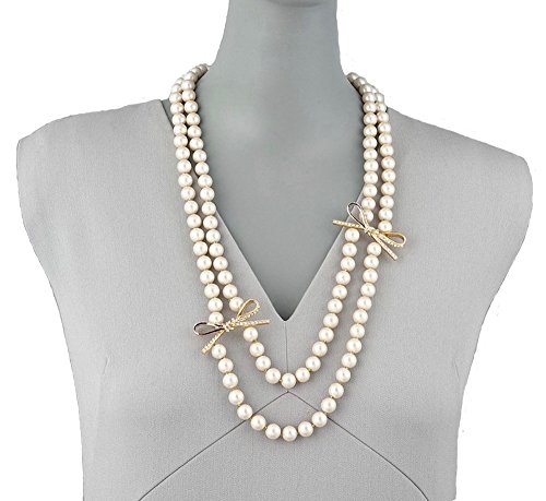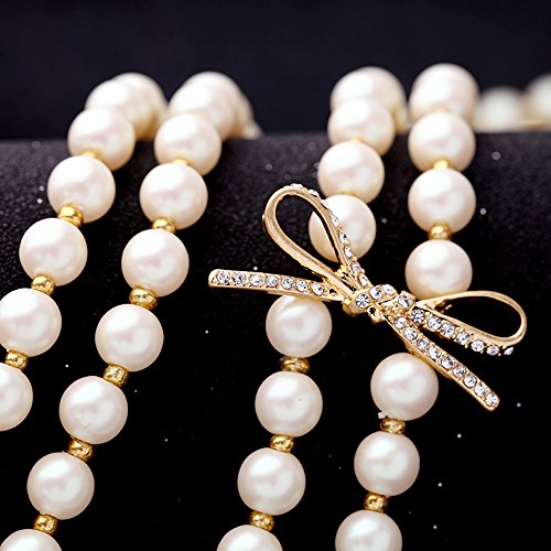 MISASHA Imitation Pearl and Crystal Bowknot Celebrity Bridal Necklace