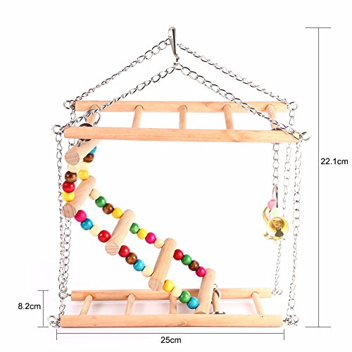 Studio : Angelwing Publisher : Angelwing Binding : Misc. Product Description This hanging ladder has been specially designed to enrich your pet's life, which allows your hamster, gerbil or other similar size pets to swing, gnaw and climb. Wood material is ideal for your pet to gnaw in order to keep the growth of their teeth under control. It helps challenge and exercise your bird's feet and legs. Double design is convenient for your pet to play together with its partner. The top hook can be easily attached to most pet cage. Colorful design may just meet your pets preference for colors. Specifications: Material: Wood Shackle Color: As Pictures Show Size: 25 * 8.2 * 22.1cm / 10 * 3.2 * 8.7inch Weight: 235g Type: Pet Toy Function: Pet Gnawing, Swinging, Playing and Climbing Toy Package Includes: 1 x Pet Hanging Ladder (Not Including the Parrots) 0