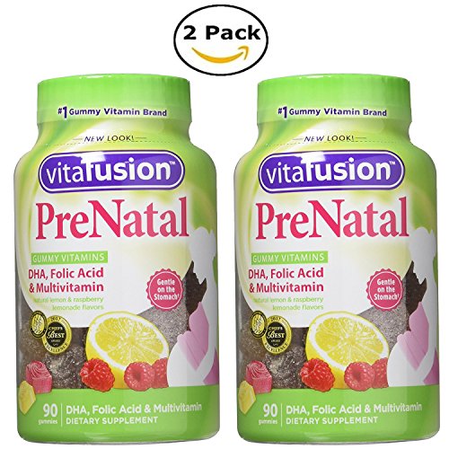 • 2 of the 90 count bottles for a convenient 3 month supply • Vitafusion Prenatal Essential Multi Formula in naturally flavored gummies with up to 45 servings per bottle