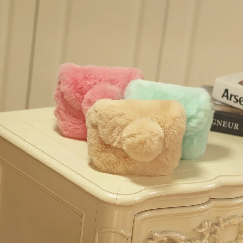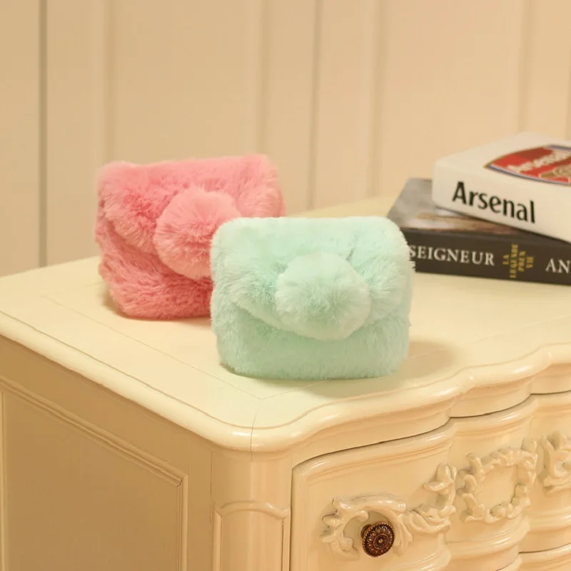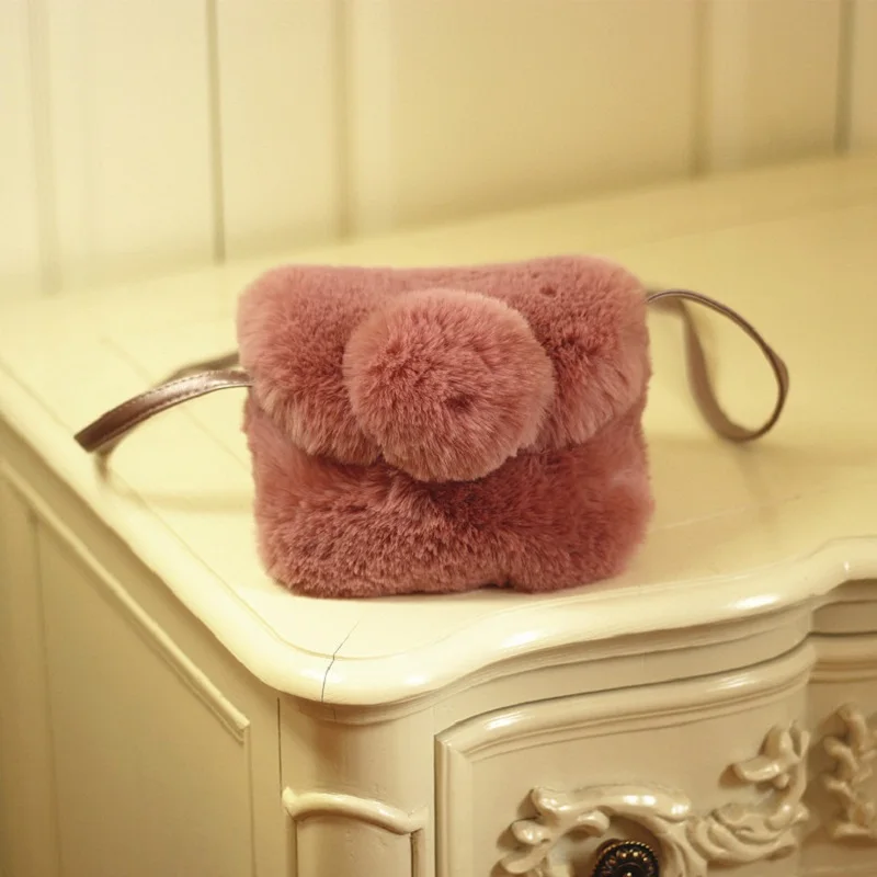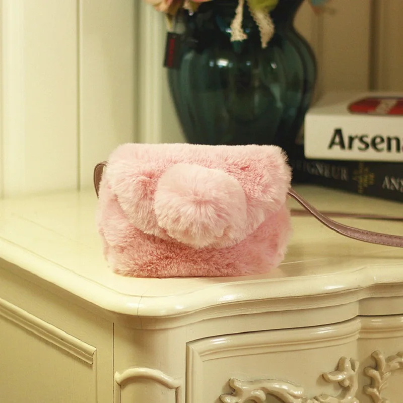 Surface material:faux fur plush messenger bag