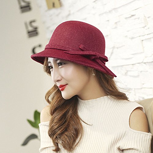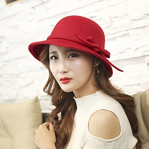 (Roffatide)/Accessories/Hats/DIRECT FROM USA/Roffatide Women's Woolen Bucket Hat Cloche Top Hat with Bowtie Winter Boonie Bowler Hat 6 Colors