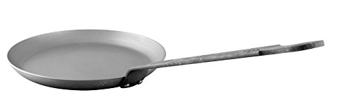 MADE IN FRANCE. Made of extra thick black steel /carbon steel. Iron handles. Excellent heat conduction -ideal for searing.