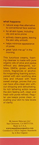 -. Feature : This luxurious creamy, foaming cleanser is made with pure organic oils of olive and jojoba without any detergents, sulfates, GMOs, gluten, artificial colors, fragrances or alcohol / Its invigorating foaming action, paired with skin soothing aloe vera and infused with fresh sweet orange, proves that you can have ultra-clean skin without stripping and dehydrating / Its rich lathering action leaves the skin feeling soft, clean and fresh with pores refined