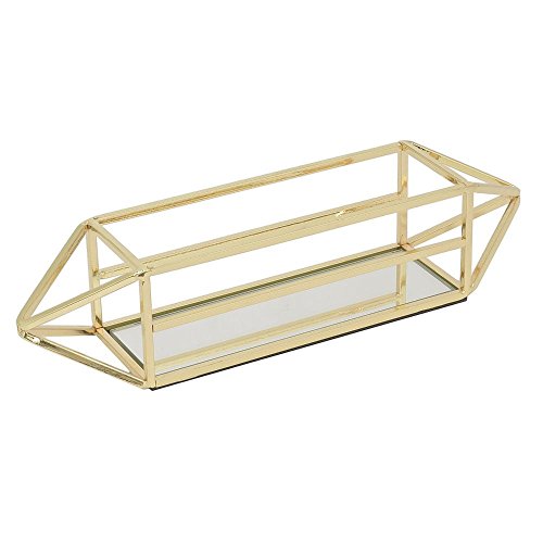 Benzara HRT-29574 Not Applicable 10.75" Rose Golden Metal Tray with Mirror