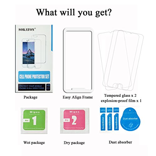 -. Binding : Wireless Phone Accessory -. Brand : SOKATON -. Feature : 1.Please Note: The edge of the screen is curved, glass protective film can not completely cover the entire screen, so it covers the largest area of 99% of the entire screen / 2.High Quality: 9H hardness tempered glass, which is 3 times stronger than normal 3H hardness, can effectively protect your phone from unwanted scratches and friction from keys, knife and other harmful factors; 2.5D Rounded Edges: Smooth feeling at all edges / 3.HD Retina Clarity: High-Transparency provide you high-definition clear viewing. Hydrophobic Oleophobic screen coating protects against sweat and oil residue from fingerprints and keeps high-sensitivity touch response / 4.Eye-protective: 100% brand new glass film, with the highest quality, amazing appearance and perfect feel! Use retina HD display mode, the biggest protect your eyes / 5.Easy installation: Bubble-Free Adhesive makes it easy to install this screen protector; SOKATON provide the customers WARRANTY within 90 days after you received the glass screen protector -. Label : SOKATON -. Manufacturer : SOKATON -. PackageQuantity : 1 -. ProductGroup : Wireless -. ProductTypeName : WIRELESS_ACCESSORY -. Publisher : SOKATON -. Studio : SOKATON -. Title : iPhone 7 Screen Protector SOKATON Tempered Glass Screen Protector HD Clear for Apple iPhone 7, iPhone 6S / 6 (4.7 Inch) / iPhone 7 Plus/ iPhone 7 Pro (5.5 Inch)[2.5D Curved Edge] [High Definition] [Anti-Scratch]