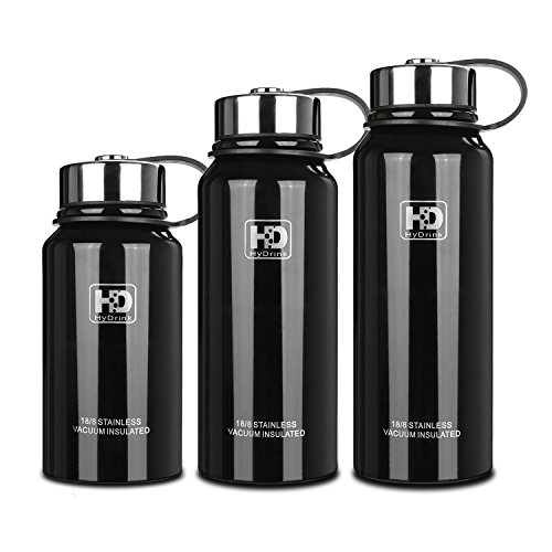 -. Feature : STURDY, DURABLE QUALITY: This sleek and red sports water bottle is made from high quality food grade 18/8 stainless steel that will not break. It will never leave a metal taste or rust. Better than using plastic or glass water bottles! Perfect for women and men, boys and girls.! / FUNCTIONAL DESIGN: The powder coat exterior finish is a classic. It assures that you stand out with a very durable and simple modern shape bottle. The wide-mouth opening makes this double walled vacuum insulated water bottle easier to fill up and clean. Fashion design let you carry it easily while camping, hiking, or doing any other outdoor sports. Offer colors: Black, Red, Army Green and Original Stainless Steel. / NO LEAKS: The travel water bottle comes with a leak proof, insulated cap. The stainless steel lid will prevent any accidental spills. 40 oz (1200 ml) capacity is large enough to fit your daily hydration needs. The stainless steel repels any lingering flavors. Just put this portable sports water bottle in your gym bag or the side pouch of your backpack and you are ready to go! / 100% SATISFACTION GUARANTEED: We guarantee that the high quality HyDrink bottle will surely please you! If, for any reason, you are not 100% satisfied with the HyDrink, we will issue you a full refund or an exchange! / VACUUM INSULATED: Goodbye sweat! Double wall insulation makes this sports/camping water bottle sweat-free, so no coaster/cover needed! This vacuum insulated water bottle can keep your cold drink perfectly chilled up to 24 hours or your coffee, hot drink hot for up to 12 hours. It keeps the temperature inside the bottle. So you can carry the water bottle comfortably, whether it was full of boiling water or a pack of ice! Also, this will hydro guide you and keep you healthy in almost any activity!