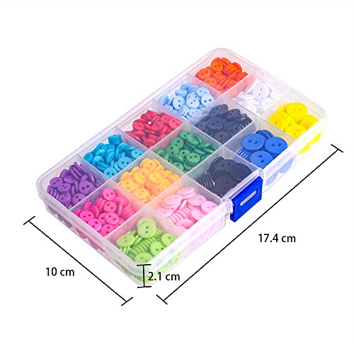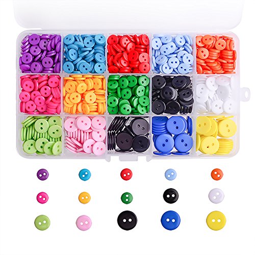 WXJ13 3 Sizes Resin Button 14 Colors Button Crafting with Plastic Storage Box, 1105 Pieces