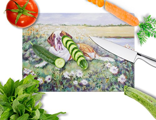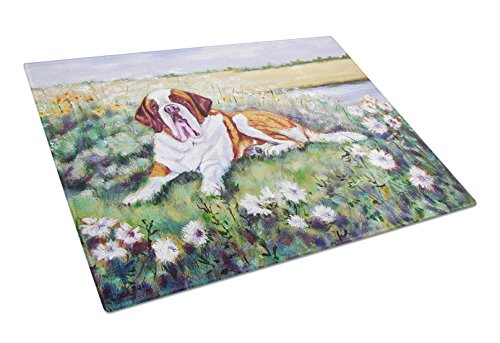 Caroline's Treasures 7446LCB "Saint Bernard in Flowers" Glass Cutting Board, Large, Multicolor