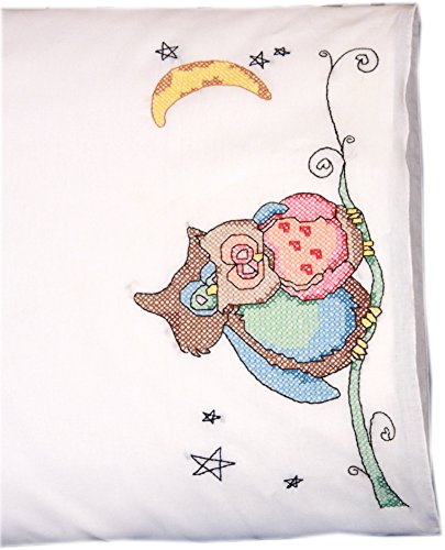 Fairway Loving Owls Stamped Parle Edge Pillowcases (2 Pack), 30" by 20"